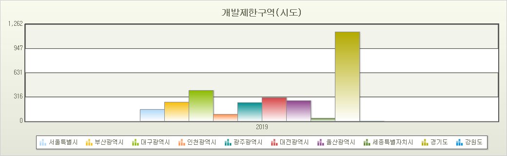 아래 자료는 통계청에서 제공하는 행정구역별 개발제한구역 분포 현황 자료이다.