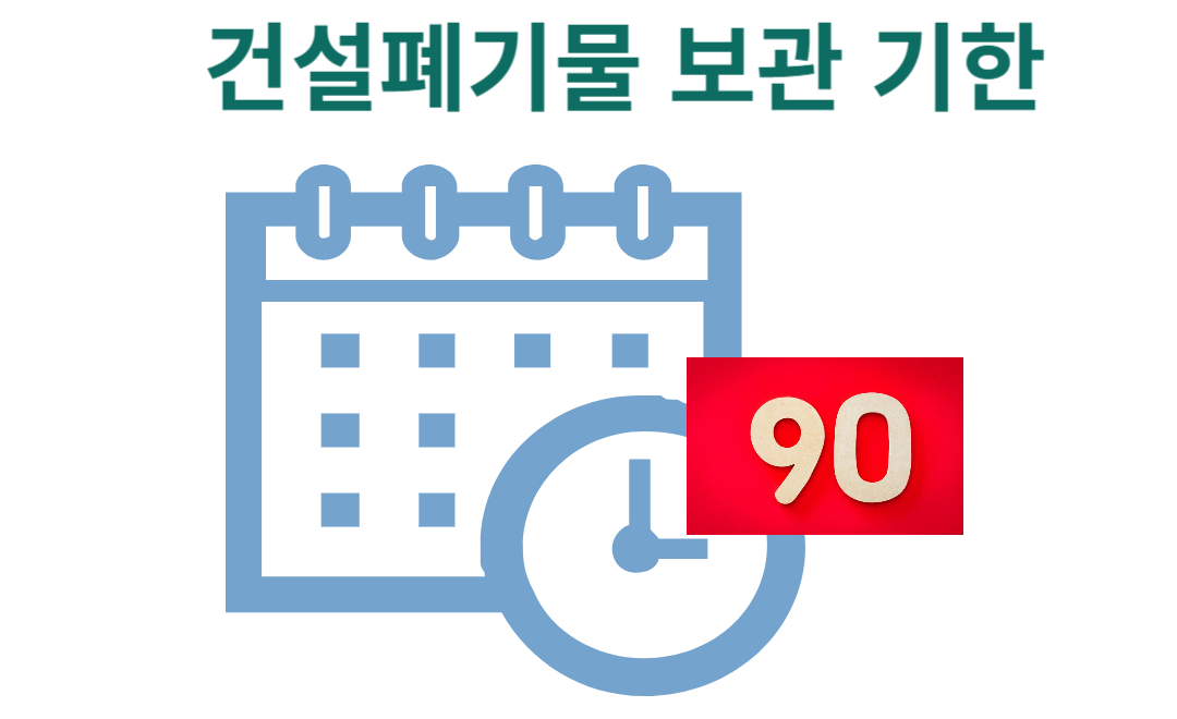 위에서 보듯이 사업장에서 발생하는 건설폐기물을 보관개시일로부터 90일을 초과하여 보관하지 않도록 규정하고 있다.