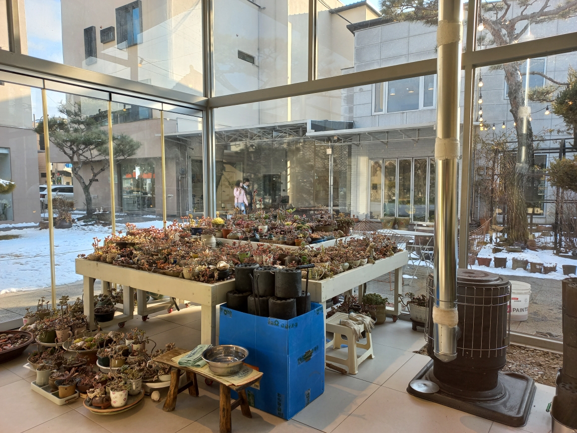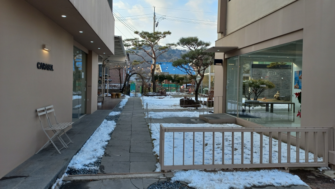 카페를 방문한 날은 이미 내린 눈이 녹지 않고 정원에 쌓여 있어 제법 겨울 분위기가 났습니다.