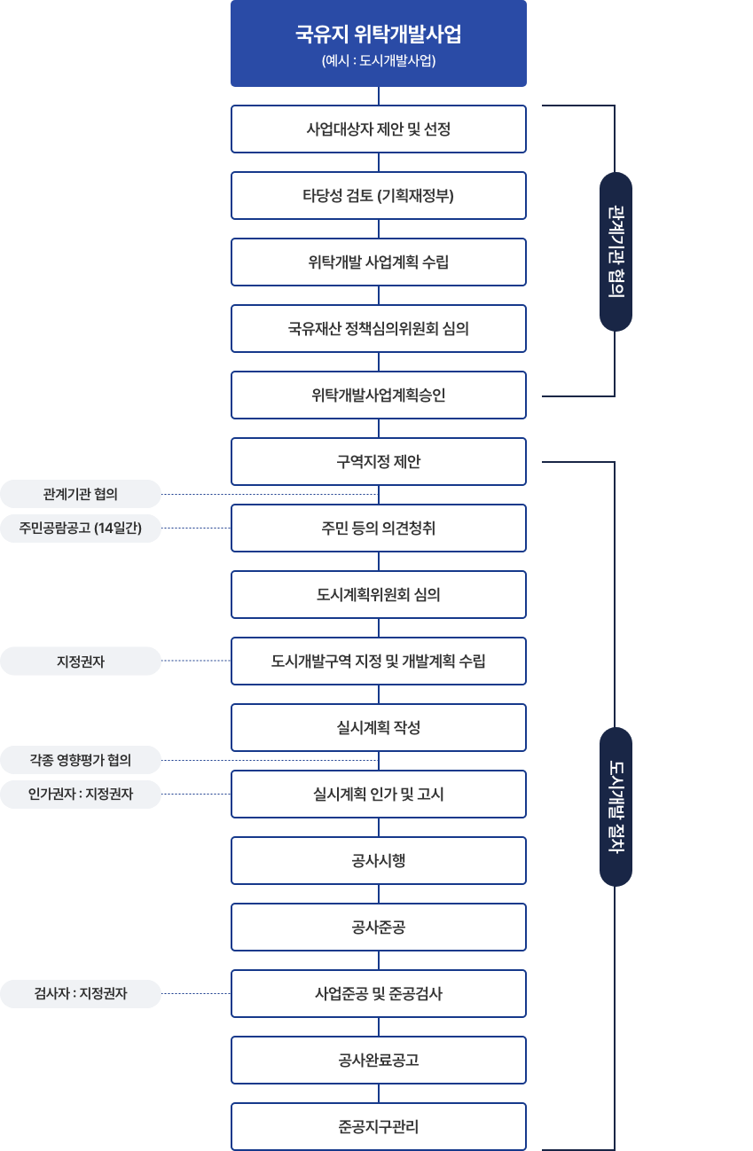 <국유재산 위탁개발사업 추진절차(도시개발구역 예시)>