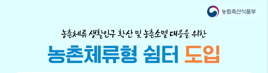 '농촌체류형 쉼터'는 도시과밀화 등 사회여건 변화 이후 높아지는 귀농·귀촌 수요에 대응하기 위해서는 농촌에서 농업과 전원생활을 동시에 체험할 수 있는 임시숙소 형태의 거주시설이 필요하다는 여론을 반영하여 도입되는 시설로, 현행법상 숙박이 불가능한 '농막'을 대체하는 새로운 개념의 농촌체류형 주거시설로 자리매김하게 될 것으로 기대하고 있다.