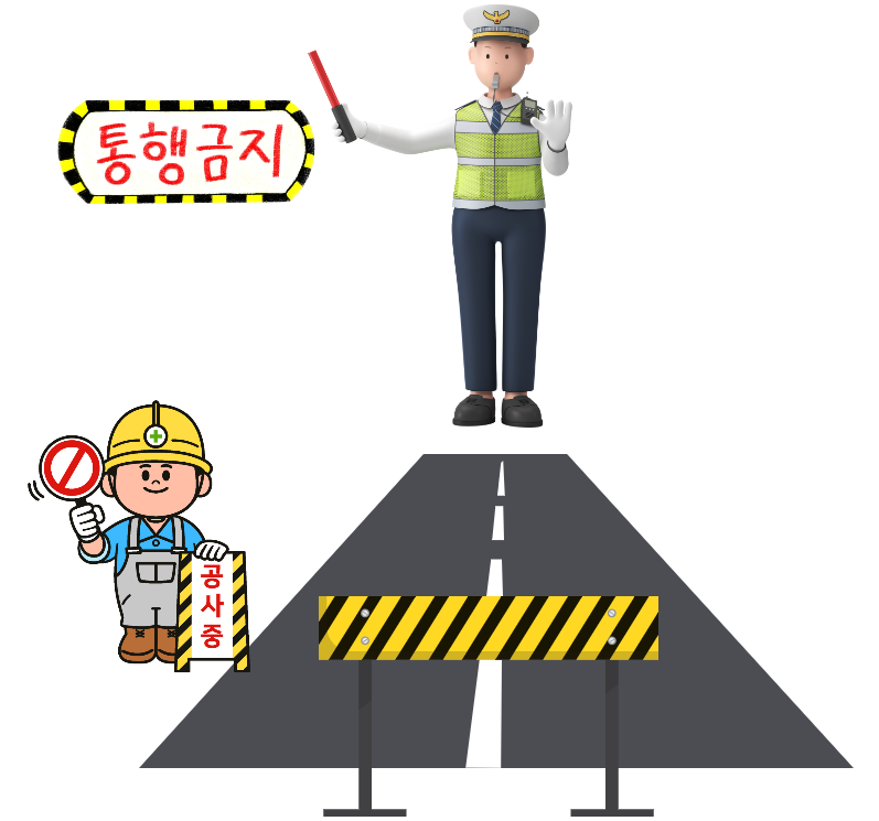 # 도로관리청, 한국도로공사, 민자도로 관리자는 도로에 관련된 공사로 인하여 부득이한 경우, 도로가 파손되거나 그 밖의 사유로 통행이 위험하다고 인정되는 경우 도로의 통행을 금지하거나 제한할 수 있다.