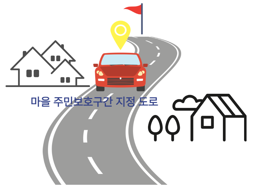 「도로법」제54조의2 제1항에 따라 도로관리청은 고속국도를 제외한 소관 도로에서 도로 인근 마을주민의 안전을 위하여 필요한 경우 해당 도로의 일정 구간을 마을주민보호구간으로 지정할 수 있다.