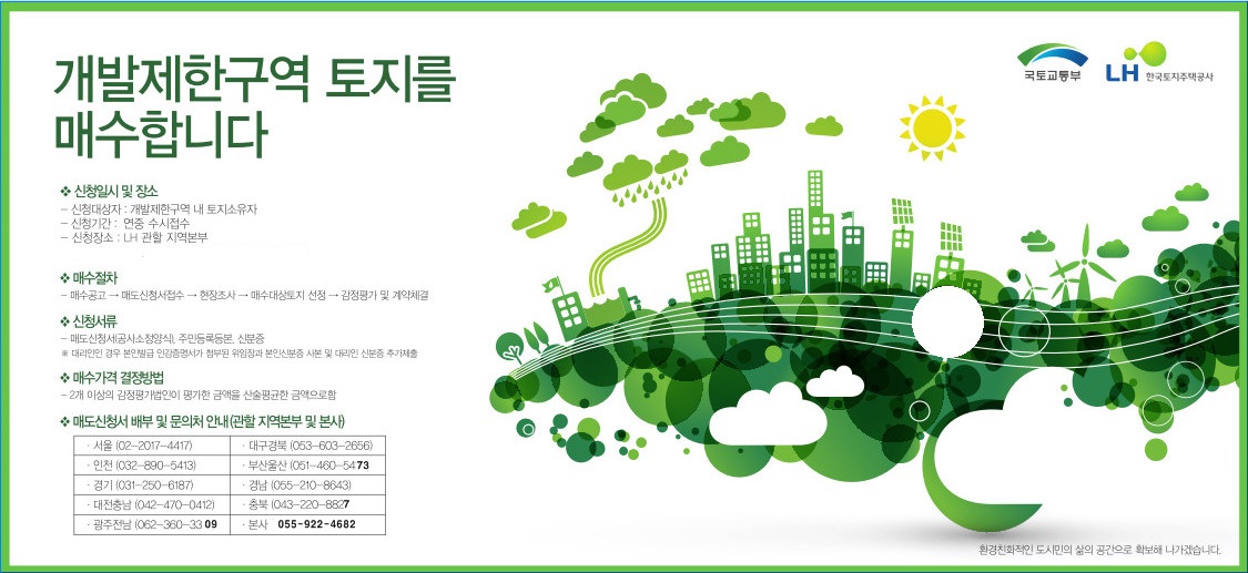 본인이 소유하고 있는 토지가 도로, 공원, 주차장 등 도시·군계획시설로 결정 되어 있거나 개발제한구역 또는 도시자연공원구역으로 지정되어 있다면 개별 법에서 정하고 있는 '매수청구' 대상에 해당되는지 여부를 확인하고, 매수청구를 고민 해보야 한다.