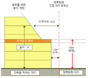 1. 높이 10미터 이하인 부분 : 인접 대지경계선으로부터 1.5m 이상