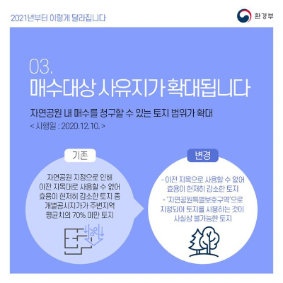 「자연공원법 시행령」제43조가 2020.12.8. 개정되면서 이러한 매수대상토지의 범위가 확대되었다.