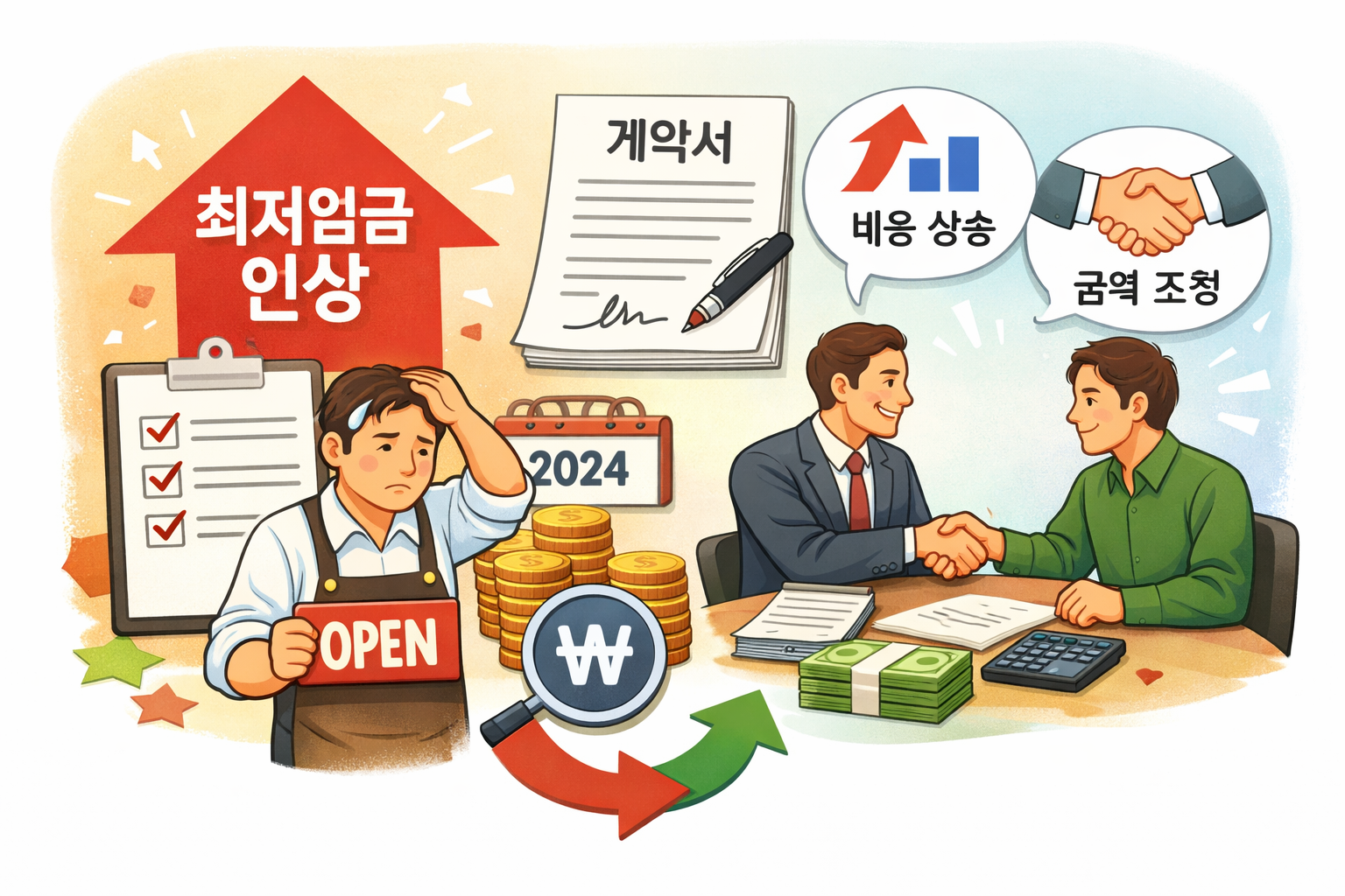# 최저임금법에 따른 최저임금액이 변동되어 당초 계약금액으로는 최저임금 지급이 곤란하다고 인정하는 경우로서 제정경제부장관이 정하는 요건에 해당하는 경우에는 계약금액을 조정한다.