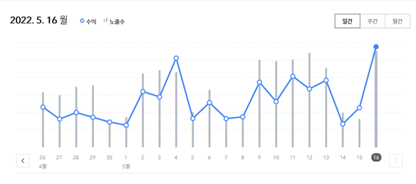 2022.5.6. 수익 그래프가 평소보다 많이 상승한 것을 확인할 수 있습니다.