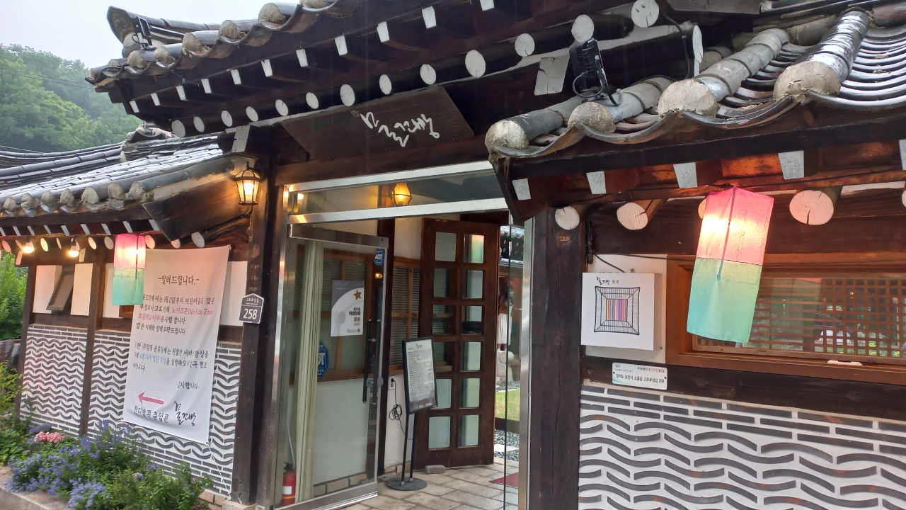 찾은 날은 비가 오는 날이라 그런지 한옥카페의 운치가 더했습니다. 서울 명륜동에 있는 한옥 2채를 헐어 이곳으로 옮겨와 5년간에 걸쳐 집을 다시 지었다 하니 그 정성과 노력에 놀랐습니다.
