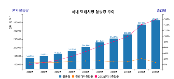 한국통합물류협회(KILA)에서 제공하고 있는 2021년 생활물류통계 자료입니다.