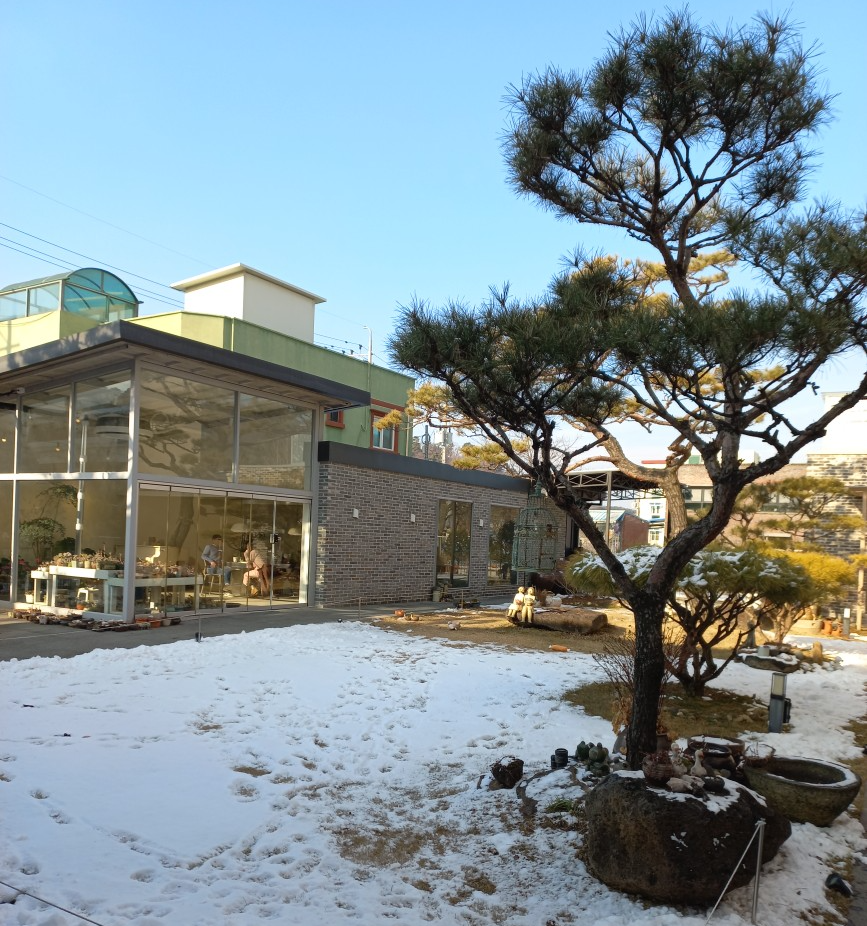 카페를 방문한 날은 이미 내린 눈이 녹지 않고 정원에 쌓여 있어 제법 겨울 분위기가 났습니다.